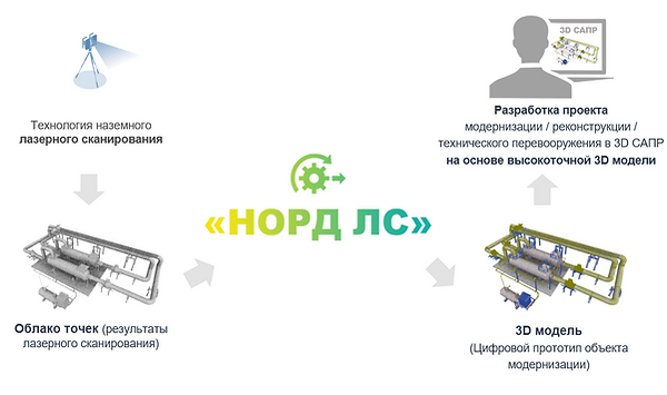 Система обработки и распознавания данных лазерного сканирования «НОРД ЛС» – отечественный программный продукт обработки и распознавания данных лазерного сканирования для автоматизированного построения высокоточных 3D-моделей промышленных предприятий и инженерных сооружений.